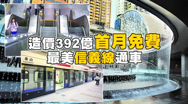 造價(jià)392億新臺(tái)幣的臺(tái)北捷運(yùn)信義線,是繼板南線后北市第二條東西向捷運(yùn),也號(hào)稱是最美捷運(yùn)線。臺(tái)北市政府說,信義線通車后可紓解板南線1成5以上轉(zhuǎn)乘人潮,首月持悠游卡可免費(fèi)搭乘該線;民眾年底即可搭信義線直達(dá)臺(tái)北101看跨年煙火。記者昨試乘,列車行駛不算平穩(wěn),但如大安森林公園站站內(nèi)噴泉水幕等公共藝術(shù)繽紛多元,令人驚艷。