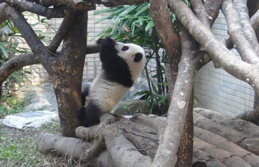 中國臺灣網(wǎng)12月1日消息 據(jù)臺灣媒體報道,臺北市立動物園的大熊貓寶寶“圓仔”已經(jīng)148天大,體重10.9公斤。北市動物園今表示,圓仔現(xiàn)在是保育員們的跟屁蟲,也是個“熊”精,媽媽“圓圓”做什么牠就跟著做,例如學(xué)喝水、學(xué)咬竹子、學(xué)爬高。之前圓仔下棲架到達(dá)一定高度時,牠會讓自己滾下來,現(xiàn)在圓仔好像抓到了訣竅,會小心翼翼半滑半溜的下棲架。
