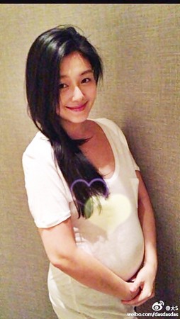 大S抱肚拍孕照。(圖片翻攝自大S微博)