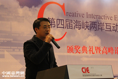 趣游科技集團海外合作中心總監(jiān)吳曉寶作主題發(fā)言。(中國臺灣網(wǎng) 劉承思 攝)