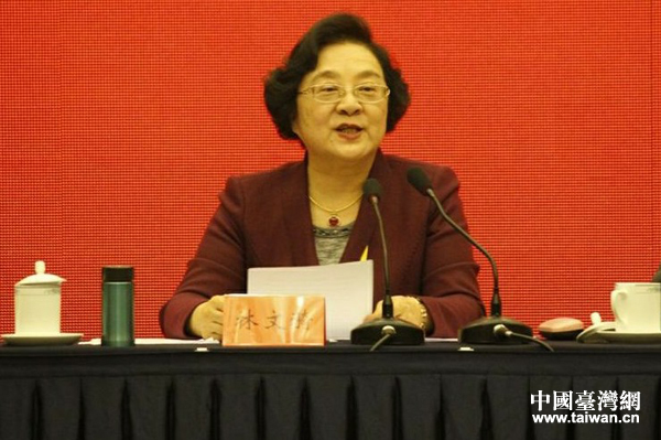 全國政協(xié)副主席、臺盟中央主席林文漪代表第九屆中央常務委員會作工作報告。(中國臺灣網(wǎng) 周劍 攝)