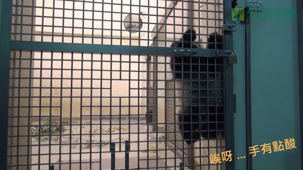 胖寶寶圓仔體重逼近11公斤,調(diào)皮的牠近來(lái)不聽(tīng)話,老愛(ài)“趴趴走”、找樂(lè)子,昨天還趁著媽咪不注意時(shí),上演攀爬鐵網(wǎng),大秀“蜘蛛熊”英姿,不料耐心不足,只爬了8秒鐘就宣告放棄。