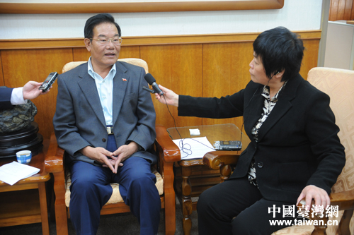 記者采訪澎湖縣長王乾發(fā)。(李建偉 攝)