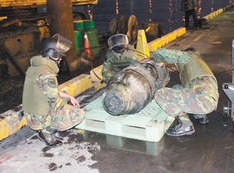 中國(guó)臺(tái)灣網(wǎng)12月13日消息 據(jù)臺(tái)灣《聯(lián)合報(bào)》報(bào)道,基隆港為迎接22日即將亮相的黃色小鴨,最近趕工疏浚深內(nèi)港,昨天傍晚時(shí)分,在港內(nèi)撈出一顆重500磅的炸彈。臺(tái)軍方分析可能是二次大戰(zhàn)美軍轟炸基隆港的燃燒彈,經(jīng)檢視引信已斷。