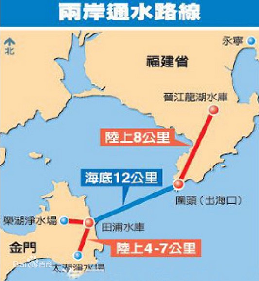 這條備受矚目的供水路線,水源來自容量6.55億立方米的晉江山美水庫,目前水道已打通到海邊圍頭,一旦16.7公里海上管線鋪設(shè)完成,即可登陸金門金沙鎮(zhèn)田埔海邊,再鋪300米陸上管線,就能直達(dá)田埔水庫,分流輸送周邊凈水場處理。