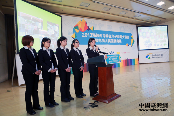 20日下午,由中國(guó)臺(tái)灣網(wǎng)(m.com3y.cn)、海峽兩岸互聯(lián)網(wǎng)交流委員會(huì)、中華臺(tái)灣MIT正品推廣協(xié)會(huì)主辦的“2013海峽兩岸學(xué)生電子商務(wù)大講堂暨電商大賽頒獎(jiǎng)典禮”在京舉行。圖為臺(tái)灣區(qū)總決賽第一名獲獎(jiǎng)團(tuán)隊(duì)分享參賽心路歷程與收獲。(中國(guó)臺(tái)灣網(wǎng) 于斯文 攝)