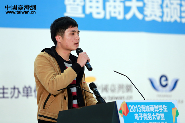 20日下午,由中國(guó)臺(tái)灣網(wǎng)(m.com3y.cn)、海峽兩岸互聯(lián)網(wǎng)交流委員會(huì)、中華臺(tái)灣MIT正品推廣協(xié)會(huì)主辦的“2013海峽兩岸學(xué)生電子商務(wù)大講堂暨電商大賽頒獎(jiǎng)典禮”在京舉行。圖為大陸區(qū)總決賽第一名獲得者分享參賽體會(huì)。(中國(guó)臺(tái)灣網(wǎng) 于斯文 攝)