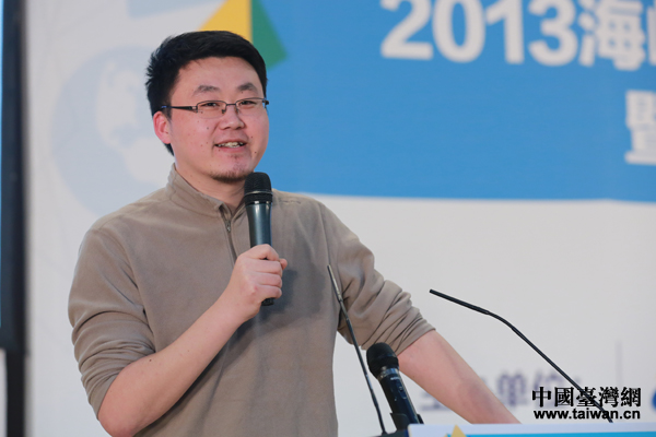 20日下午,由中國(guó)臺(tái)灣網(wǎng)(m.com3y.cn)、海峽兩岸互聯(lián)網(wǎng)交流委員會(huì)、中華臺(tái)灣MIT正品推廣協(xié)會(huì)主辦的“2013海峽兩岸學(xué)生電子商務(wù)大講堂暨電商大賽頒獎(jiǎng)典禮”在京舉行。圖為大陸靈狐科技首席戰(zhàn)略咨詢師費(fèi)悅明作題為“電商時(shí)代、90后的時(shí)代”的演講。(中國(guó)臺(tái)灣網(wǎng) 于斯文 攝)