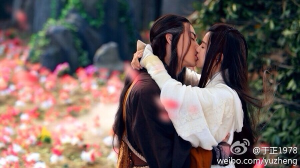 小龍女和楊過的深情擁吻照(圖片取自于正微博)