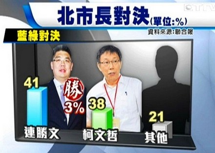 中國(guó)臺(tái)灣網(wǎng)12月24日消息 綜合臺(tái)灣媒體報(bào)道,臺(tái)灣聯(lián)合報(bào)系民意調(diào)查中心23日針對(duì)臺(tái)北市長(zhǎng)選舉公布民調(diào),但綠營(yíng)參選人卻只列出柯文哲、呂秀蓮、顧立雄等三位參選人,引起被獨(dú)漏的許添財(cái)不滿;而呂秀蓮也質(zhì)疑這是“假民調(diào)”以假亂真,呼吁選民理性看待,也希望媒體不要操弄民調(diào)。新北方面,代表藍(lán)營(yíng)的現(xiàn)任市長(zhǎng)朱立倫,雖然至今尚未宣布是否要尋求連任,但卻以5成8的支持度大幅領(lǐng)先代表綠營(yíng)出戰(zhàn)的前臺(tái)當(dāng)局“行政院長(zhǎng)”游錫堃。