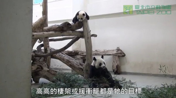 園方說,圓仔已練成攀爬高手,活動場里高高的棲架或房間里的緩沖籠,都是牠的目標(biāo)。當(dāng)圓圓在吃早餐時,圓仔會跑來跑去自己在一旁找樂子,此刻圓圓雖然看似淡定,但都注意著圓仔的一舉一動。
