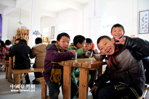 冷水鎮(zhèn)小學(xué)經(jīng)過三年教育實(shí)驗(yàn),學(xué)生精神面貌發(fā)生巨大變化,圖為學(xué)生們在食堂愉快就餐。(中國臺灣網(wǎng) 李徽 攝)