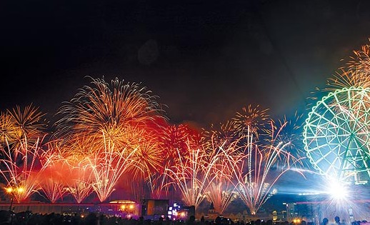 高雄義大世界跨年煙火璀璨,照亮夜空、氣勢磅礡。(臺(tái)媒圖)