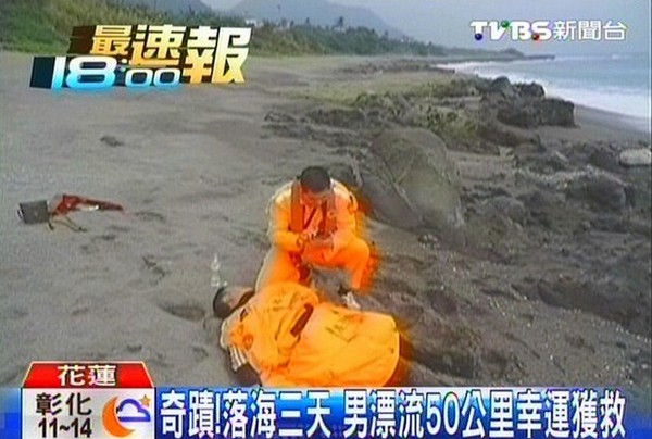 中國(guó)臺(tái)灣網(wǎng)1月6日消息 據(jù)臺(tái)灣“東森新聞”報(bào)道,臺(tái)灣花蓮42歲男子曾連發(fā)3日凌晨捕鰻苗不慎落海失蹤,他表示,幸好海上有浮木,像搭竹筏一樣在海上漂流了3天,最后被打到50公里外的豐濱鄉(xiāng)沙灘上。