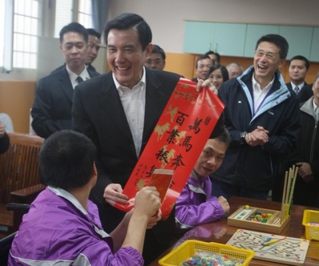 馬英九愛講冷笑話:春聯(lián)有3個字不是我寫的!(臺媒圖)