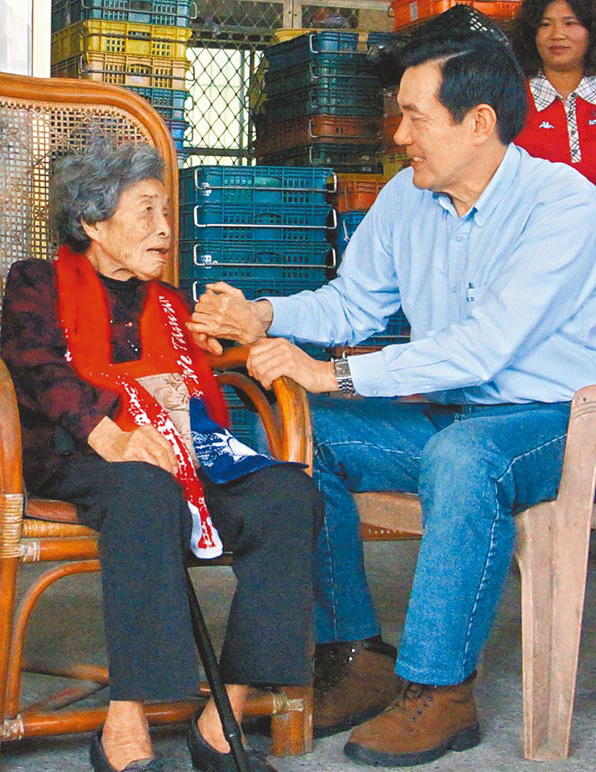 馬英九昨日探視年逾九旬的慰安婦小桃,并送小桃2萬元新臺幣紅包。(來自臺灣《中國時報》)
