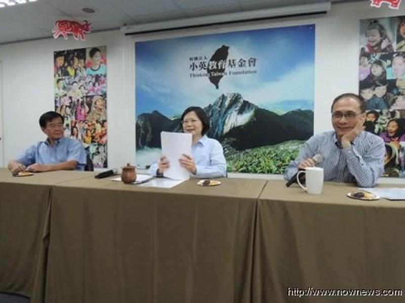 民進(jìn)黨前主席蔡英文(中)、臺灣當(dāng)局前“國安會副祕書長”江春男(左)、小英基金會執(zhí)行長林全。(圖片取自臺灣“今日新聞網(wǎng)”)