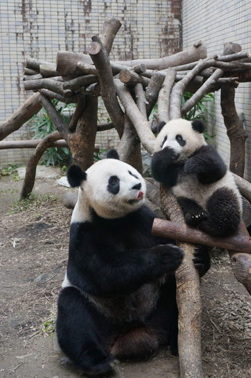大貓熊寶寶“圓仔”跟媽媽一起到戶外走春。來源:臺北市動物園