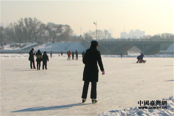湖面凍結后,形成了天然滑冰場。(中國臺灣網 馬迪 攝)