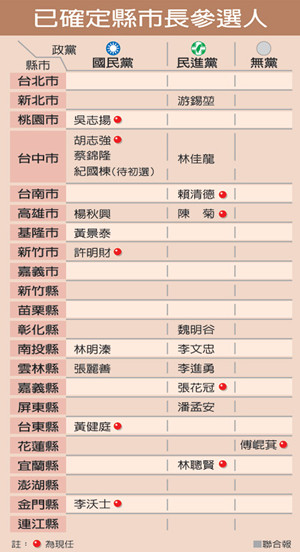 臺灣地區(qū)“七合一”選舉已確定參選的縣市長候選人。(圖片來自臺媒)