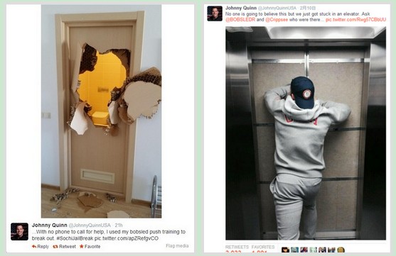 中國臺灣網(wǎng)2月12日消息 據(jù)臺灣“東森新聞”報道,美國雪車選手奎恩(Johnny Quinn)到俄羅斯參加冬季奧運,結(jié)果被反鎖在飯店浴室,最后打爆木門才順利脫困,沒想到不到48小時,他又再次受困,只不過這次是被困在電梯里面,他還開玩笑地說“幸好這次有朋友陪伴”。