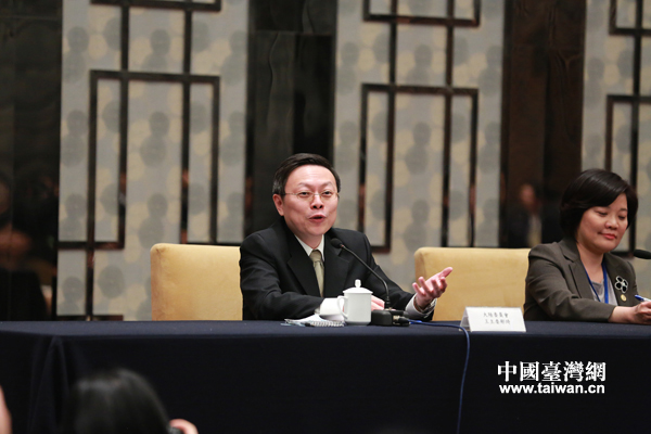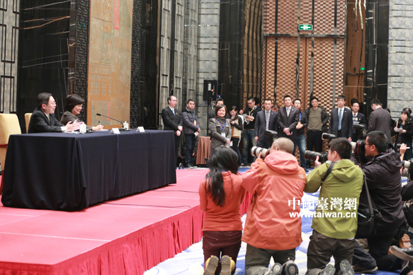 2月11日,臺(tái)灣陸委會(huì)負(fù)責(zé)人王郁琦在南京紫金山莊舉行記者會(huì),說明“張王會(huì)”成果。(中國臺(tái)灣網(wǎng) 田云鵬 攝)