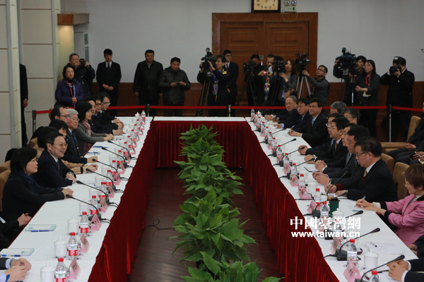 2月13日,臺灣方面大陸委員會負(fù)責(zé)人王郁琦來到上海社科院,與智庫學(xué)者進(jìn)行座談。(中國臺灣網(wǎng) 田云鵬 攝)