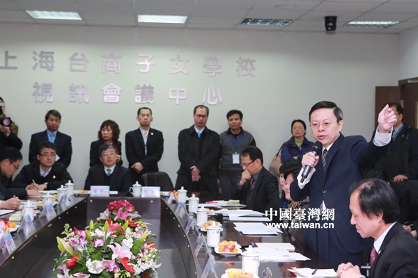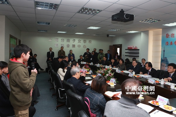 14日上午,臺灣陸委會負責人王郁琦一行來到上海臺商子女學校進行參訪,并與學校教師、學生和學生家長代表座談。(中國臺灣網(wǎng) 田云鵬 攝)