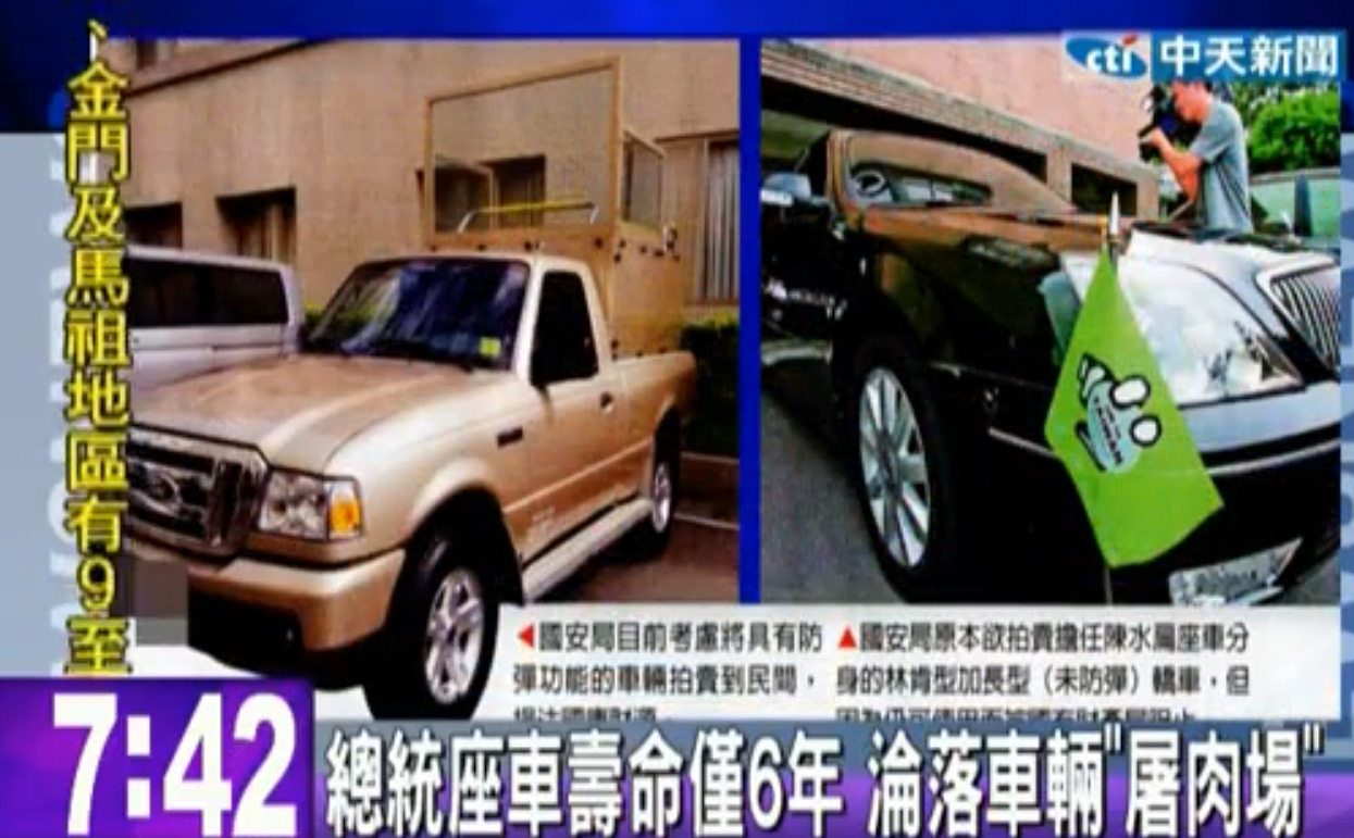 中國臺灣網(wǎng)2月14日消息 臺灣地區(qū)領(lǐng)導(dǎo)人專用轎車是何模樣?是否堅(jiān)固耐用?日前臺灣電視媒體向觀眾進(jìn)行了介紹。據(jù)報(bào)道,臺灣地區(qū)正副領(lǐng)導(dǎo)人都有專用車駕,包括特勤車輛在內(nèi),退役后的座駕到年限都會報(bào)廢,礙于法令,他們的最終下場就是被拆解。