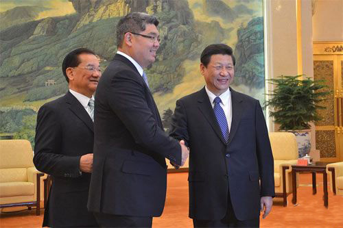 2013年2月,中共中央總書記習(xí)近平在京會見連戰(zhàn),連勝文隨父同行。會見中有一個有趣的過程,連戰(zhàn)把他的兒子介紹給習(xí)近平,然后特別強調(diào)說“我兒子個子很高”。多高呢?1米95。習(xí)近平開心地大笑,笑得非常輕松,就像一家人。(圖片取自網(wǎng)絡(luò))