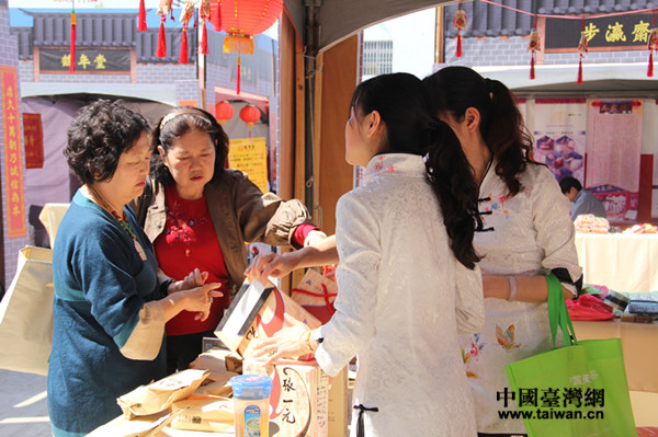 2月17日中午11時(shí),距離撤展還有5小時(shí),張一元帶來的二十箱茶葉僅剩下不到2箱,圖為臺(tái)灣客人在撤展前購(gòu)買茶葉。(中國(guó)臺(tái)灣網(wǎng) 李婷婷 攝)