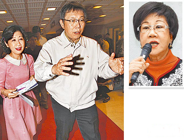 中國臺灣網(wǎng)2月24日消息 據(jù)臺灣媒體報道,綠營臺北市長之爭殺紅眼,呂秀蓮矛頭對準(zhǔn)臺大醫(yī)師柯文哲,質(zhì)疑、抹藍各種手段,只待把他整下馬?挛恼茏蚺c妻子陳佩琪現(xiàn)身臺灣音樂廳欣賞小提琴家徐錫隆的獨奏會,陳佩琪護夫心切,對于呂秀蓮的質(zhì)疑,她指出,“說話前要拿出證據(jù)”,陳愈講愈激動,柯連忙打斷:“好啦,不要講了!”