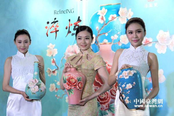 法藍(lán)瓷24日在京推出“紅樓夢(mèng)”系列,圖為禮儀小姐詮釋三款瓷品(中國(guó)臺(tái)灣網(wǎng) 李徽 攝)
