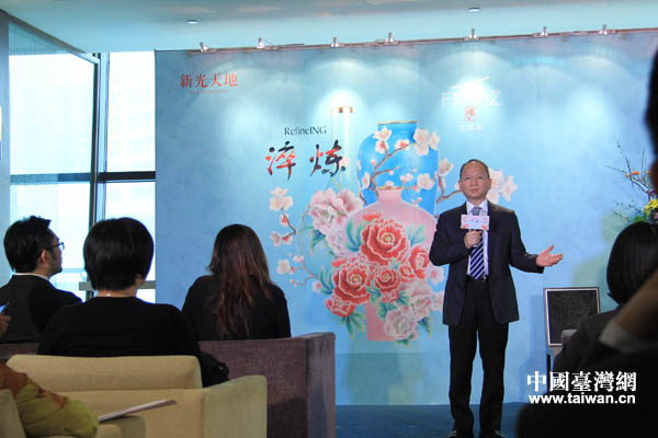 法藍(lán)瓷24日在京推出“紅樓夢(mèng)”系列瓷品,總裁陳立恒為現(xiàn)場(chǎng)嘉賓媒體進(jìn)行主題講述(中國(guó)臺(tái)灣網(wǎng) 李徽 攝)