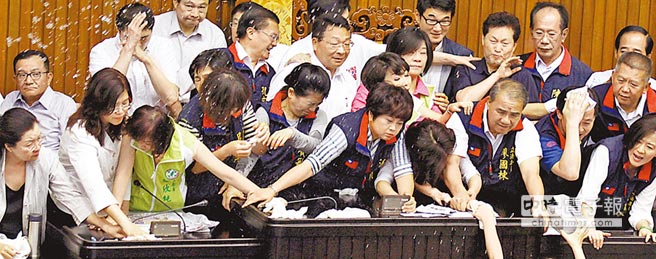 圖為去年6月“立法院會(huì)”爆發(fā)沖突的場(chǎng)面。(圖片來(lái)自臺(tái)媒)