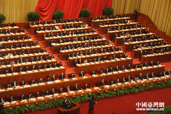 與會2000多名委員起立,向昆明“3·01”遇害無辜民眾默哀。(中國臺灣網(wǎng) 王怡然 攝)