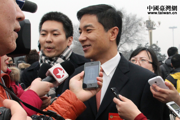 全國政協(xié)委員,百度公司創(chuàng)始人、董事長兼首席執(zhí)行官李彥宏被記者圍堵。(中國臺灣網(wǎng) 王怡然 攝)