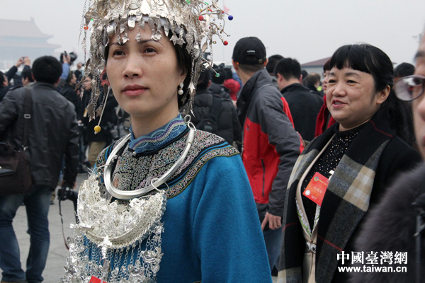 配飾華麗的少數(shù)民族委員。(中國臺灣網(wǎng) 王怡然 攝)