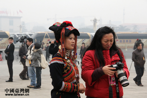 服裝艷麗的少數(shù)民族委員。(中國臺(tái)灣網(wǎng) 王怡然 攝)