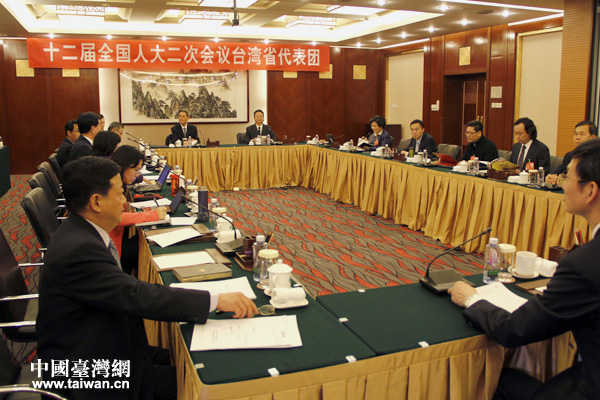 今日下午,十二屆全國人大二次會議臺灣代表團(tuán)全體會議召開。(中國臺灣網(wǎng) 高斯斯 攝)
