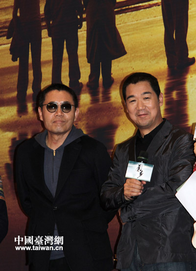 由張國(guó)立、陳寶國(guó)等兩岸明星出演的年度情感大戲《原鄉(xiāng)》6日在京舉行開(kāi)播發(fā)布會(huì),圖為主演張國(guó)立與陳寶國(guó)(中國(guó)臺(tái)灣網(wǎng) 李徽 攝)