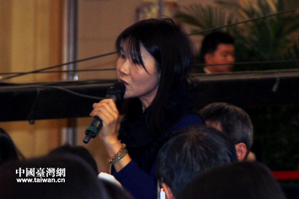 臺(tái)灣《旺報(bào)》記者在新聞發(fā)布會(huì)上針對(duì)兩岸環(huán)保合作相關(guān)問(wèn)題提問(wèn)。(中國(guó)臺(tái)灣網(wǎng) 高斯斯 攝)