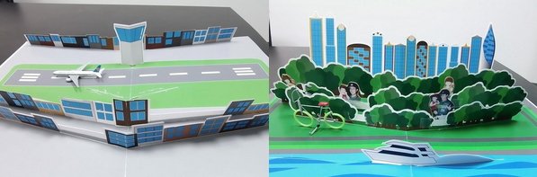 姚文智在辯論會(huì)上展示的立體書,展示松山機(jī)場翻轉(zhuǎn)成中央公園的模樣。(臺(tái)媒圖)