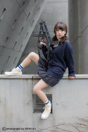 日本學(xué)生妹持槍萌照臺(tái)灣爆紅,海量美圖超越界。(臺(tái)媒圖)