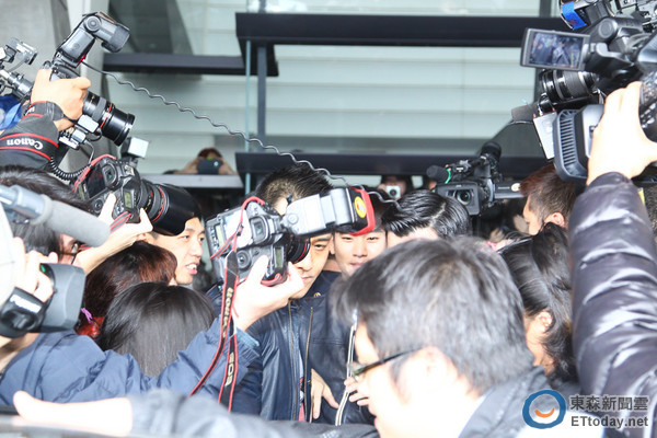 金秀賢遭媒體、粉絲淹沒,臉上表情鎮(zhèn)定。(圖片來自臺媒)