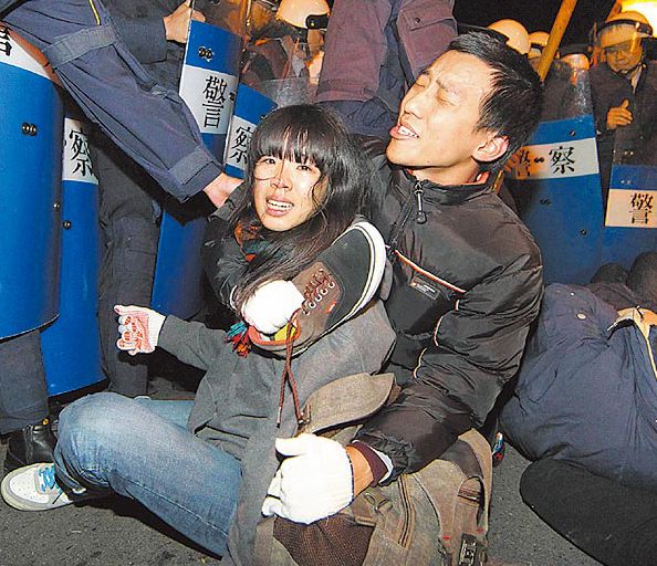 警方以警棍、盾牌強(qiáng)制驅(qū)離下,民眾頭破血流。來(lái)自臺(tái)媒