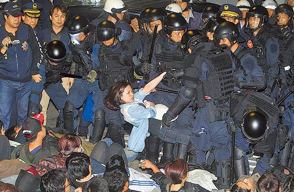 警方于執(zhí)行清場(chǎng),將靜坐民眾強(qiáng)制抬離。來(lái)自臺(tái)媒