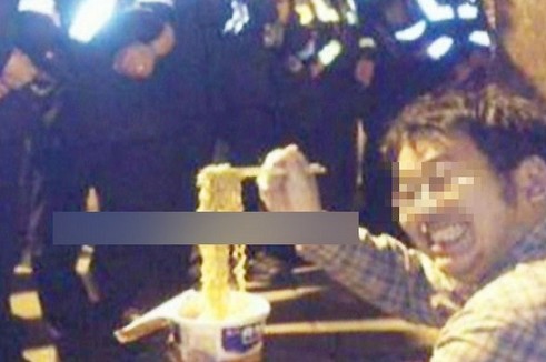 搞笑“暴民”,半夜吃泡面對警挑釁?(臺媒圖)