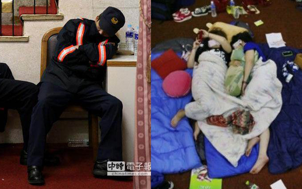 反服貿(mào)學生占領“立法院”行動持續(xù)進行,學生在議場內(nèi)外過夜,前來執(zhí)行勤務的警察也只能跟著打地鋪;對比學生有睡袋、毛毯等各界捐贈的衣物,警察只能用外套裹身,讓不少警眷感到不舍。(本網(wǎng)合成圖)
