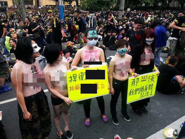 凱道出現(xiàn)5名女子裸上身抗議,大膽行為激起網(wǎng)友熱烈討論。(圖片來自臺媒)